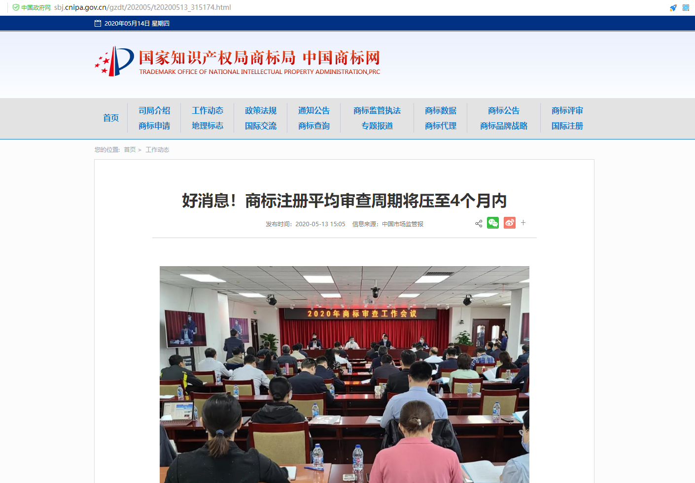 会议要求,继续做好疫情防控和服务复工复产工作,畅通绿色通道,推出新举措支持经济发展,依法从严从快打击与疫情相关的非正常商标注册申请行为。继续深化商标注册便利化改革,确保商标注册平均审查周期压缩至4个月以内,年内上线商标无效宣告、异议、撤销三年不使用申请的网上办理功能,实现我国申请人国际后续九项业务的网上申请。继续保持打击恶意注册的高压态势,出台《不以使用为目的的商标恶意注册申请审查操作指南》,加快实现对商标囤积、恶意注册行为全流程打击。